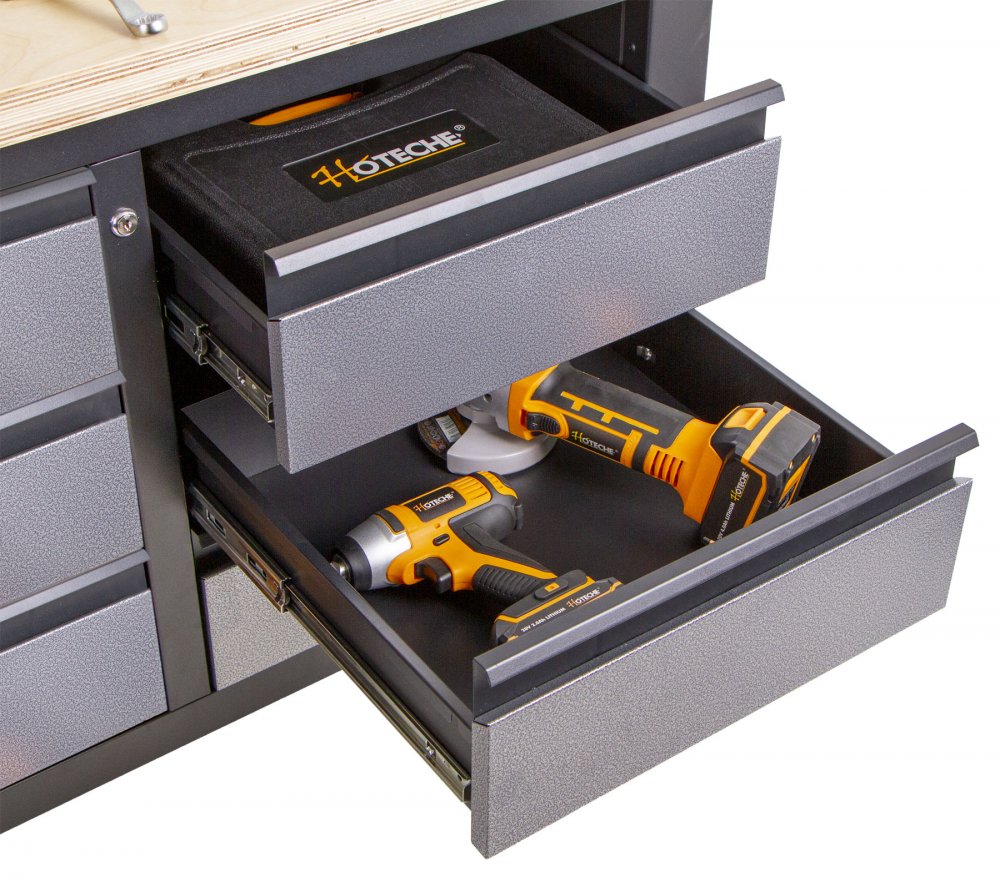 Do šuplíků můžete uskladnit nářadí jako je utahovák nebo třeba úhlovou brusku.