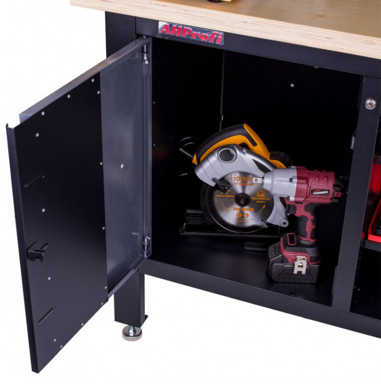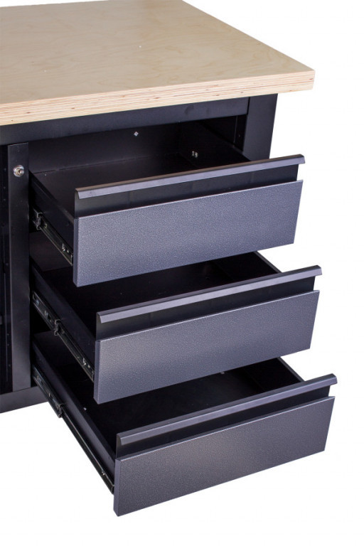 • Skříňka, 3 zásuvky a 3 regály pro přehledné uložení ručního i elektrického nářadí.