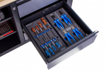 Zásuvky pracovního stolu s pěnovými výplněmi na nářadí