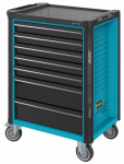 Dílenský vozík 179N-7 s odolnou konstrukcí z ocelového plechu se 7 zásuvkami, které jsou osazeny vodícími lištami s kuličkovými ložisky.