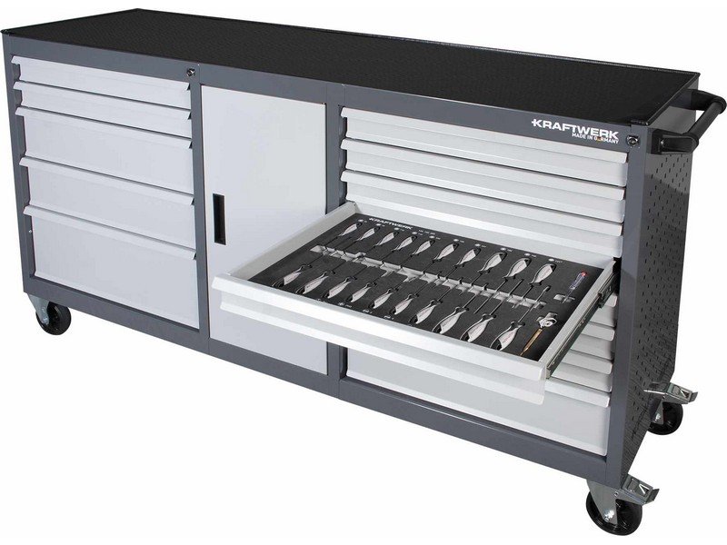- 395dílná základní sestava nářadí uložena v 8-mi zásuvkách - 17 plně vybavených modulů nářadím řady Basic-Line - uloženo v pěnových EVA vložkách - dílenský vozík BT1800 13 zásuvek + 1 dvířka BASIC LINE - robustní konstrukce s dvojitýmistěnami - perforovaná bočnice pro zavěšení příslušenství - dvě samostatně uzamykatelné zásuvkové jednotky - odolná guma proti poškrábání i tekutinám na horní str...