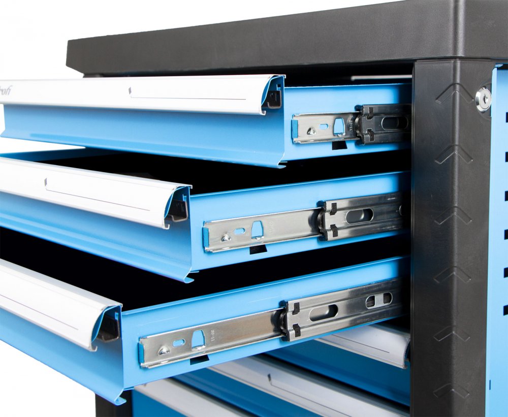 Zásuvky jsou osazeny kvalitními pojezdy, které ve spojení s kuličkovými ložisky zajišťují snadné vysouvání.
