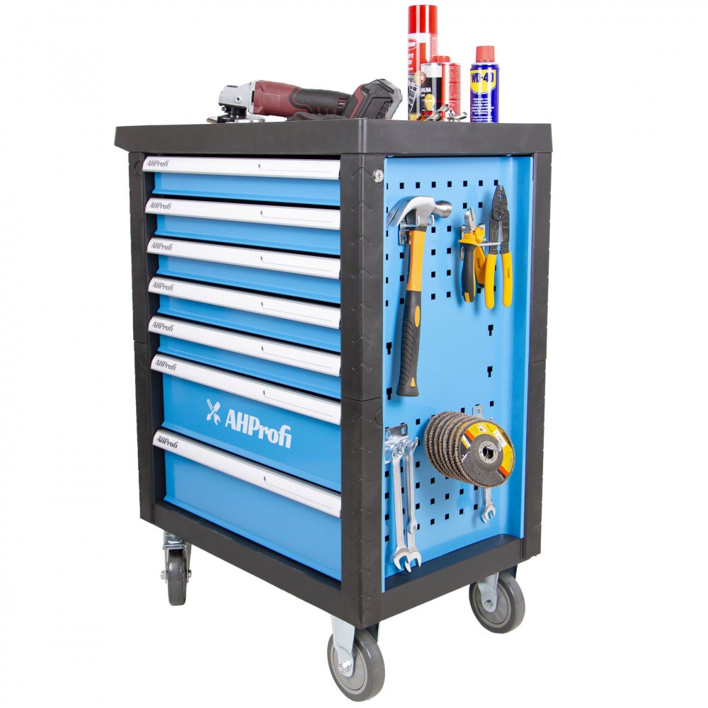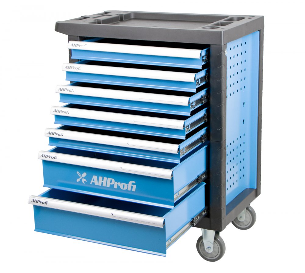 Pojízdný kovový dílenský vozík se 7 šuplíky na nářadí se bude hodit nejednomu profíkovi nebo kutilovi do jeho dílny.