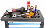 Na pracovní plochu se také hodí např. AKU bruska, bruska nebo ochranné pomůcky.