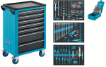 Součástí výbavy je 187dílná sada nářadí rozdělená do pěnových vložek, centrální uzamykání cylindrickým zámkem se dvěma klíči a systém zajištění zásuvek proti nechtěnému otevření.