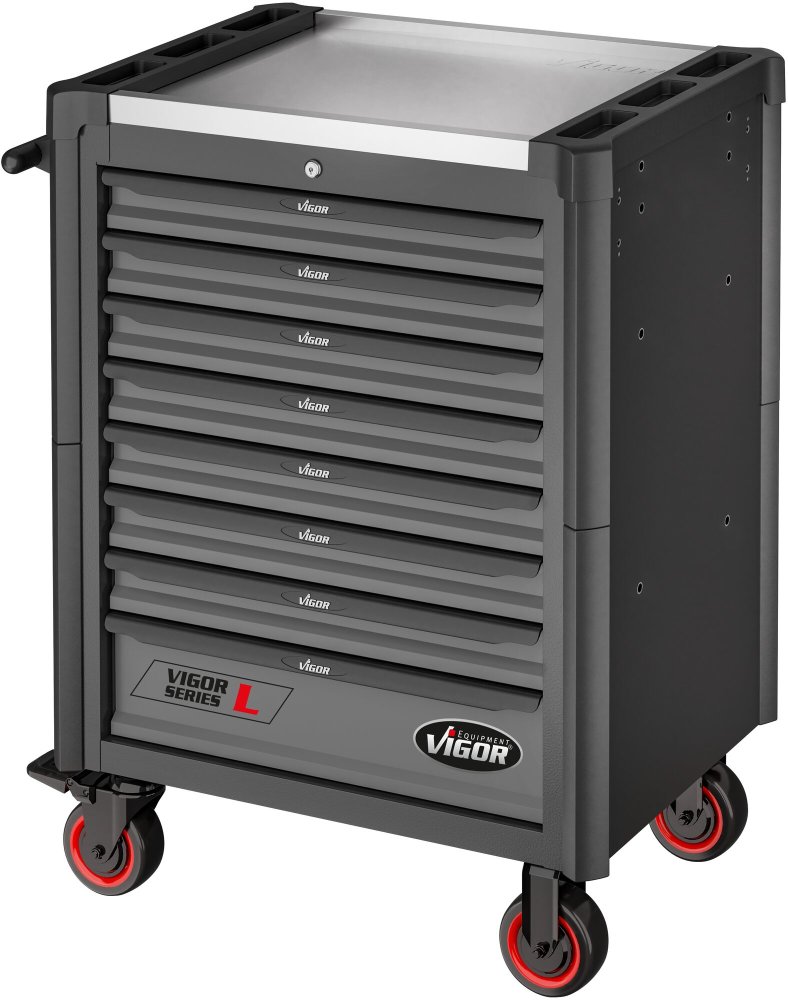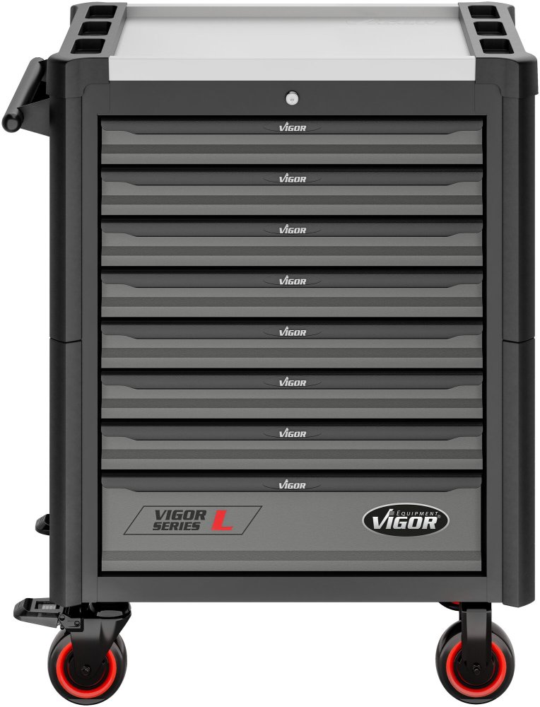 Součástí vozíku je 8 uzamykatelných zásuvek pro uložení výplní dílenského vozíku s ručním nářadím. Zásuvky jsou osazeny kuličkovými ložisky v pojezdech, čímž se zvyšuje jejich nosnost bez vlivu na výbornou vlastnost vyjíždění/zajíždění.