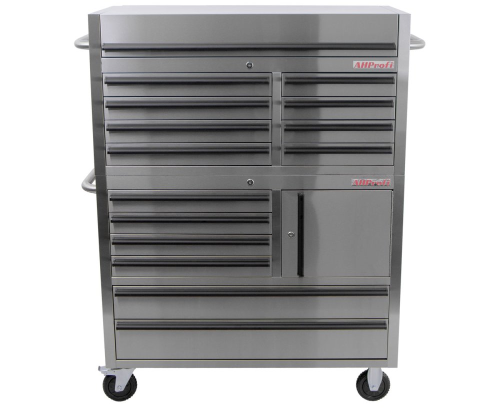 Dílenský vozík AHProfi je celokovový robustní model navržený z vysoce kvalitní nerezové oceli (typ 430) s anti-otiskovou úpravou.