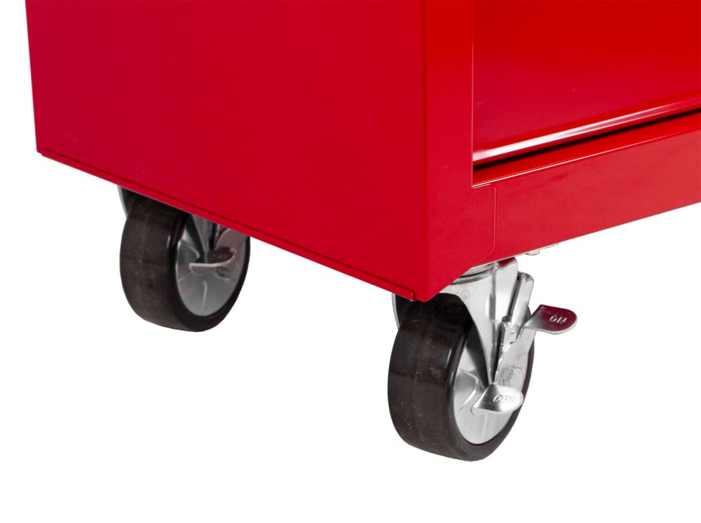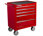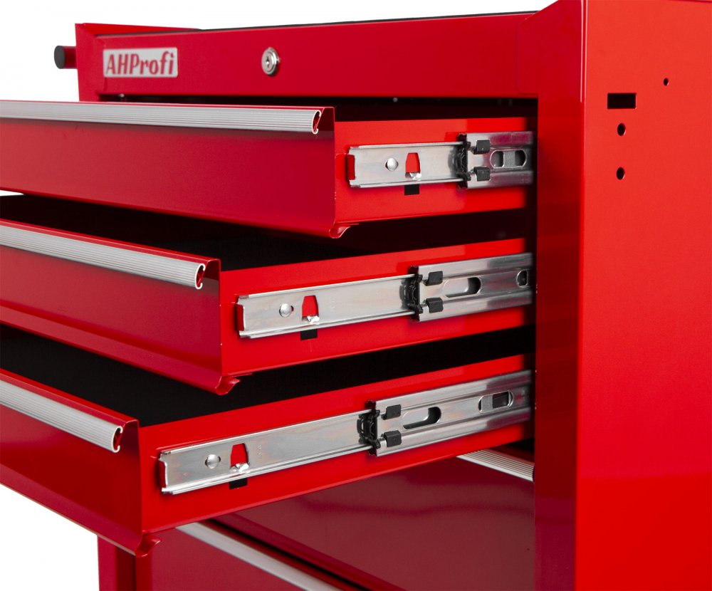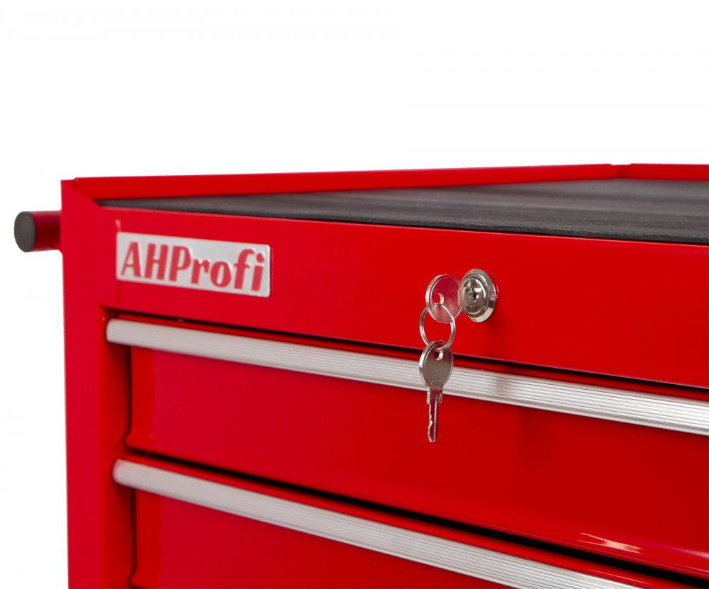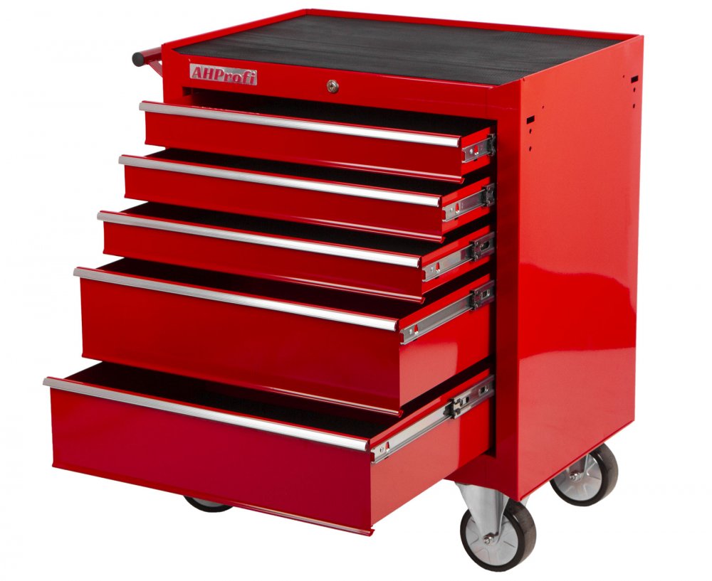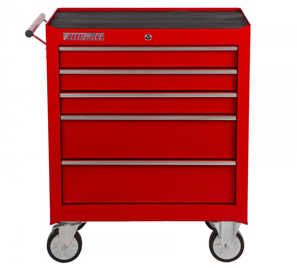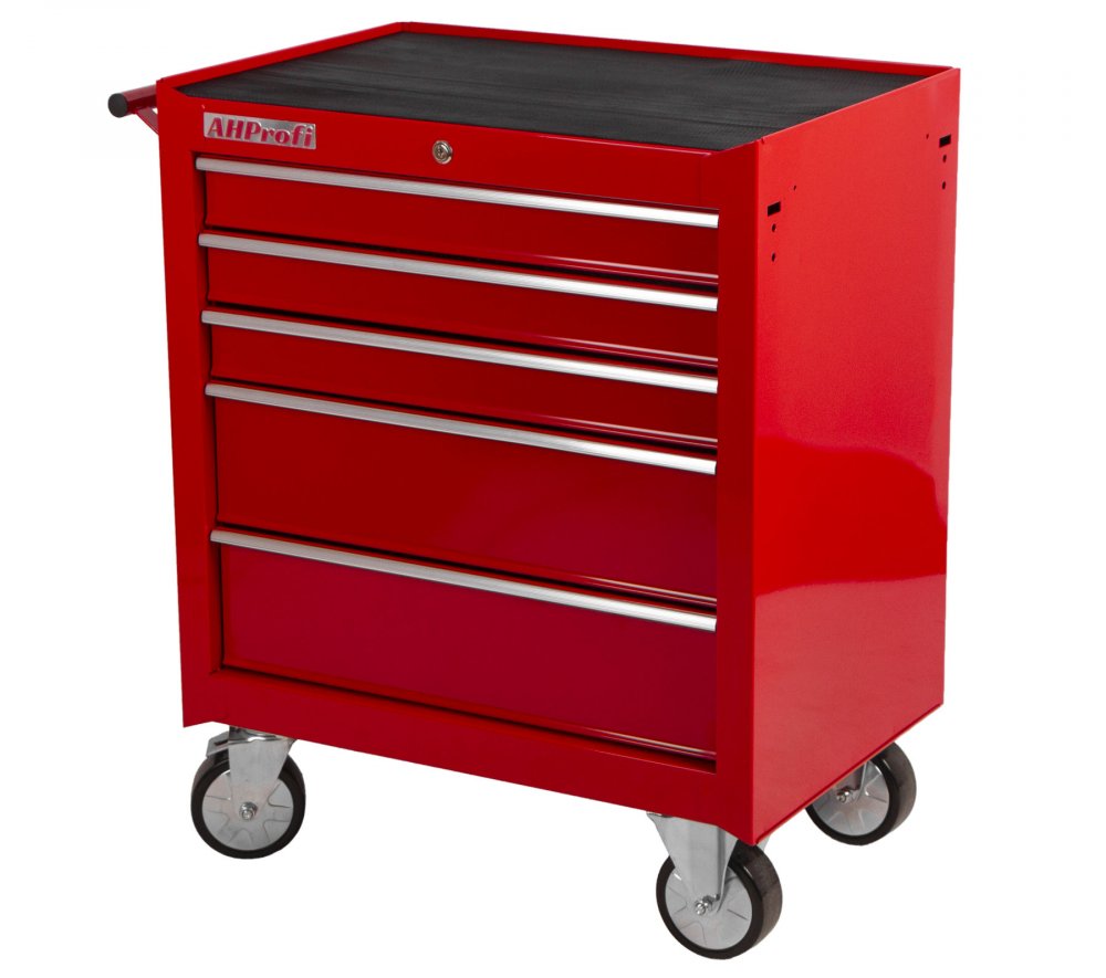 Profesionální montážní vozík z ocelového plechu, 5 uzamykatelných zásuvek s kuličkovými ložisky, 4 kolečka, speciální odolná povrchová úprava.