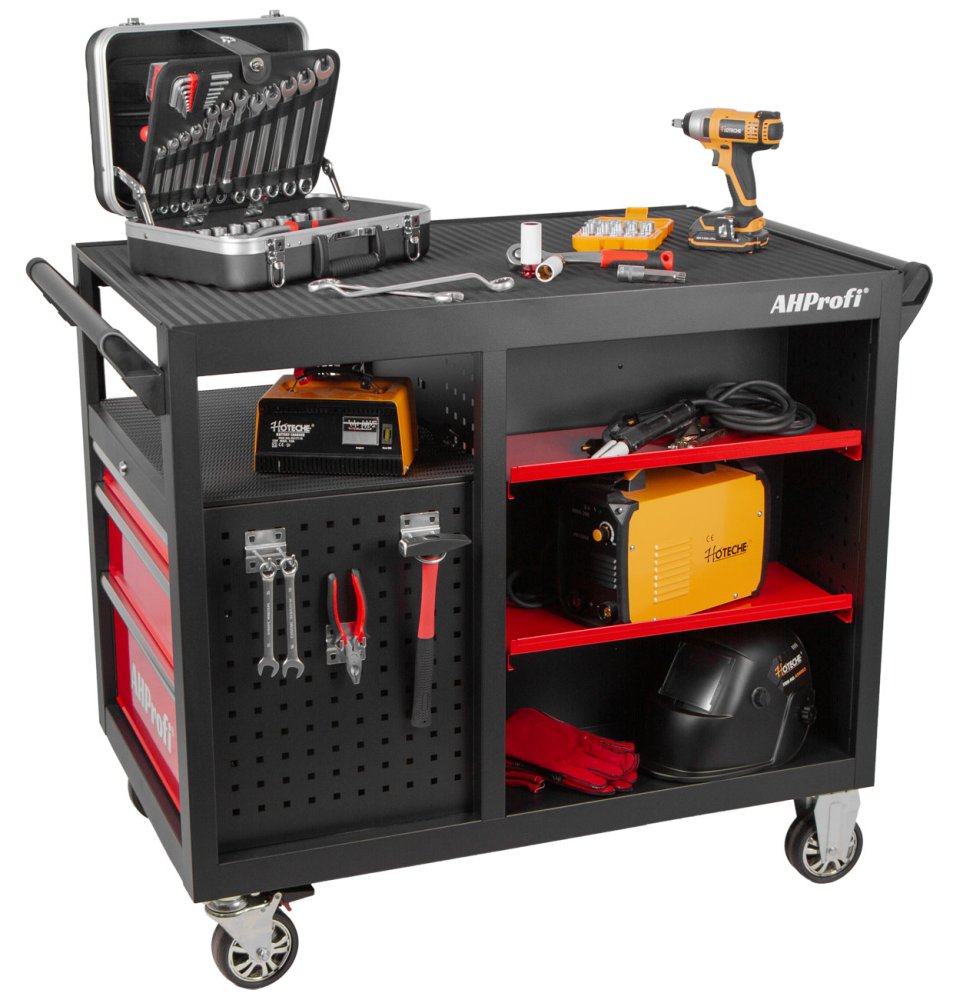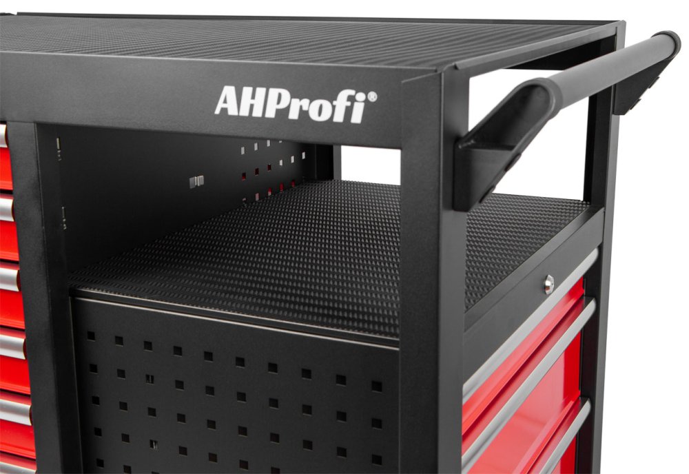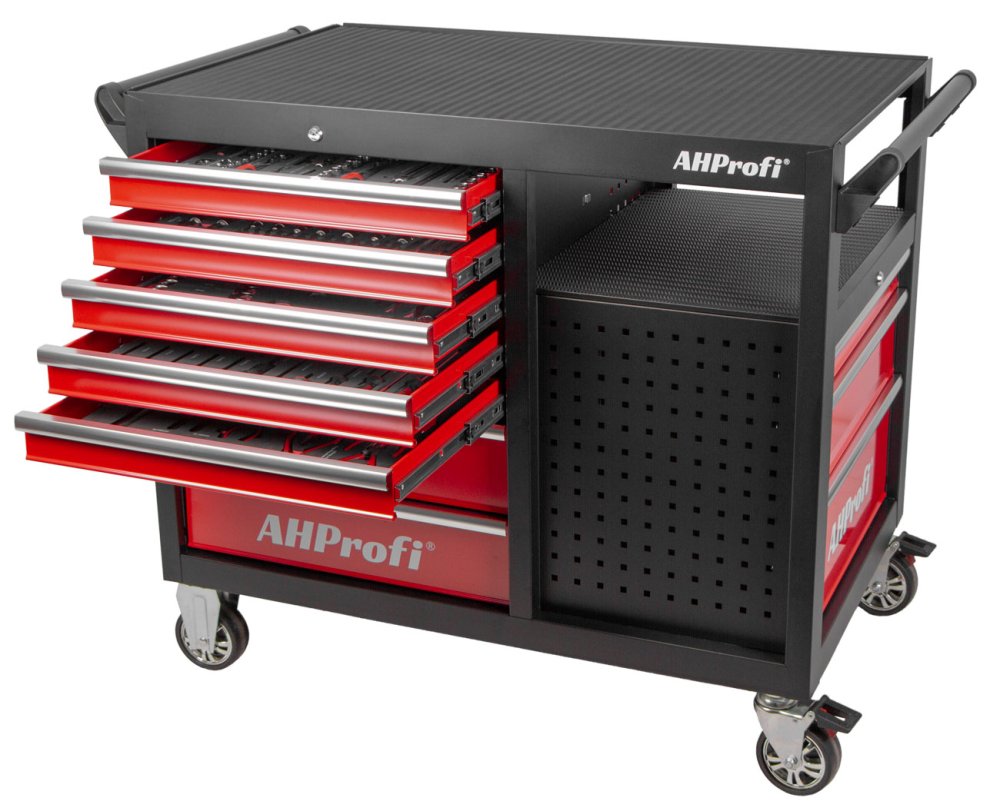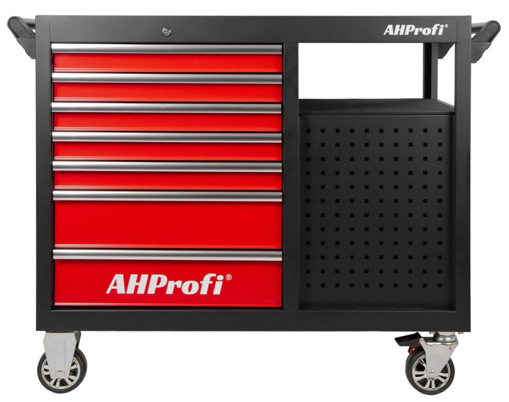 Široká konstrukce vozíku s množstvím úložného prostoru s celkem 10 šuplíky a policemi na nářadí. S celkovými rozměry (š x h x v) 1123 mm x 730 mm x 844 mm (bez koleček), nabízí vozík dostatek úložného prostoru i pro náročné uživatele.