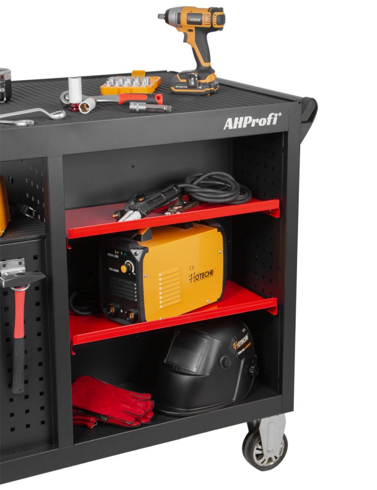 Po 3 stranách vozíku se nacházejí perforované panely, které umožňují zavěšení dalšího nářadí, pomocí různých druhů háčků.