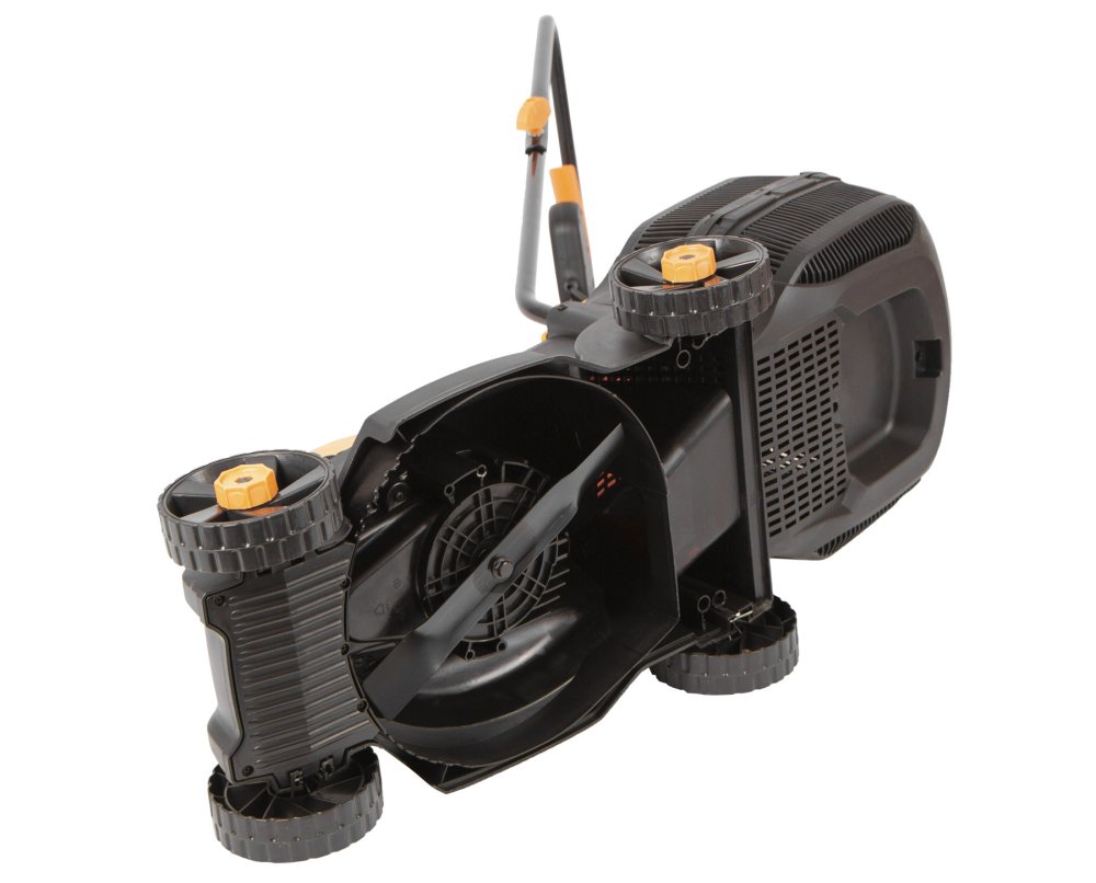 Možnost nastavení výšky sečení přešroubováním koleček. Nastavení výšky na 26, 41 a 56 mm. | |