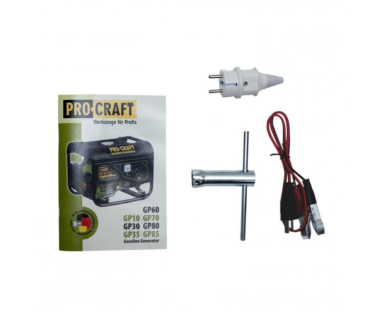 Elektrocentrála Procraft GP10 je určena k použití jako nezávislý generátor elektrického proudu při výpadcích elektřiny, jako zdroj energie při kempování, na zahradě a podobně, kde není elektrická síť dostupná. Díky své nízké hmotnosti, kompaktním rozměrům je tato elektrocentrála ideálním zdrojem energie při cestování v autě nebo při kempování. Elektrocentrála má palivovou nádrž o objemu 6 l, čím zaručí dlouhý nepřetržitý provoz. Robustní ochranný rám umožňuje použití elektrocentrály v jakýkoliv podmínkách a taky usnadňuje transportování. Součástí dodávky je klíč na svíčku. Balení karton. Přepětová ochrana AVR.