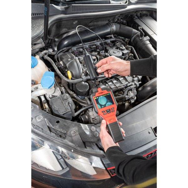 Profesionální inspekční videoendoskop s bateriovým napájením je ideálním nástrojem pro zkoumání poškození a stavu nejrůznějších součástek ve špatně přístupných místech např. v motorovém prostoru.