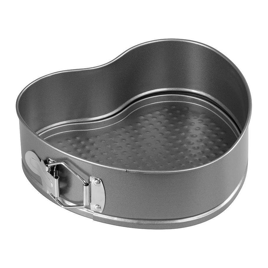 Kovová rozkládací forma na pečení ve tvaru srdce.