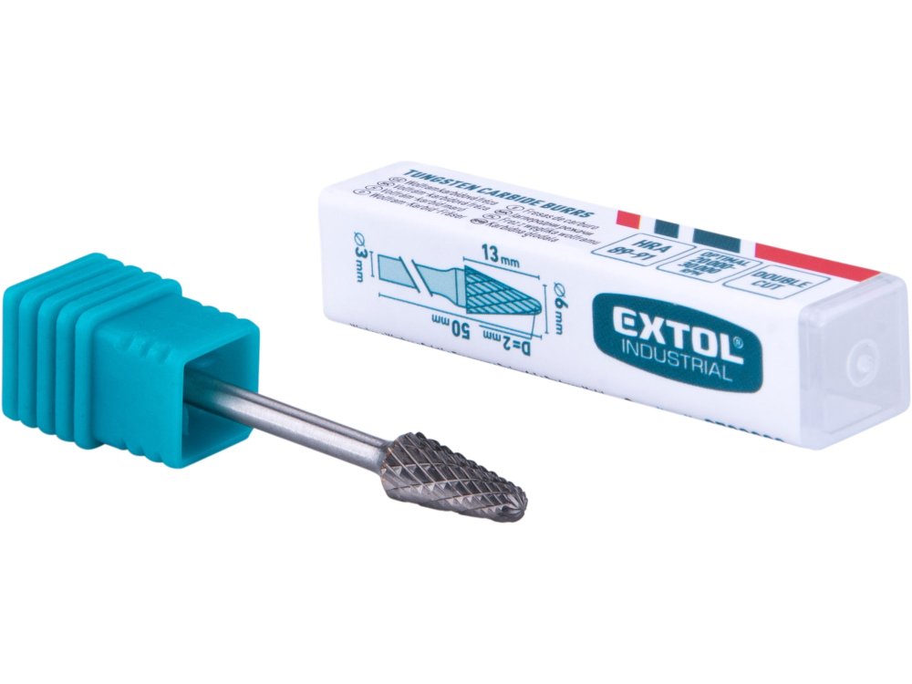 stopkové frézy EXTOL INDUSTRIAL jsou vyrobeny z kvalitního wolfram karbidu a jsou vhodné pro odhrotování, broušení a opracování kovových materiálů jako je litina, ocelo-litina, slitiny uhlíkové oceli, nerezové oceli atd. až do tvrdosti 65HRC.