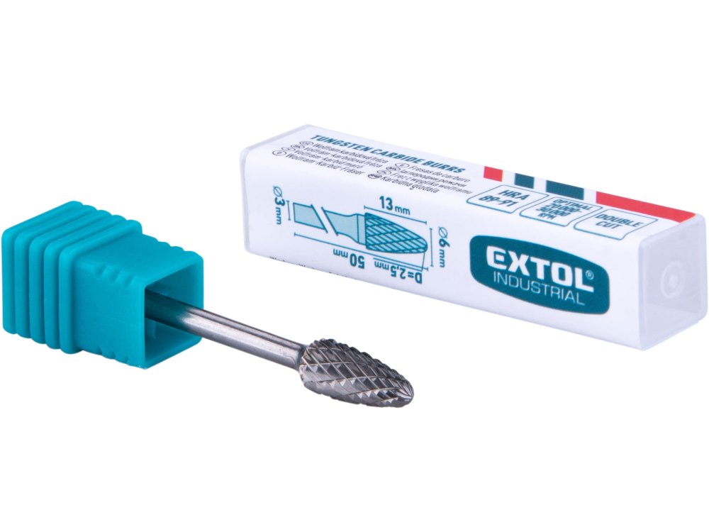 stopkové frézy EXTOL INDUSTRIAL jsou vyrobeny z kvalitního wolfram karbidu a jsou vhodné pro odhrotování, broušení a opracování kovových materiálů jako je litina, ocelo-litina, slitiny uhlíkové oceli, nerezové oceli atd. až do tvrdosti 65HRC.
