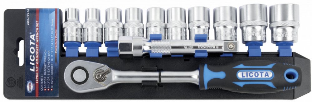 - Profesionální sada nástrčných klíčů 1/2" s ráčnou od značky LICOTA.