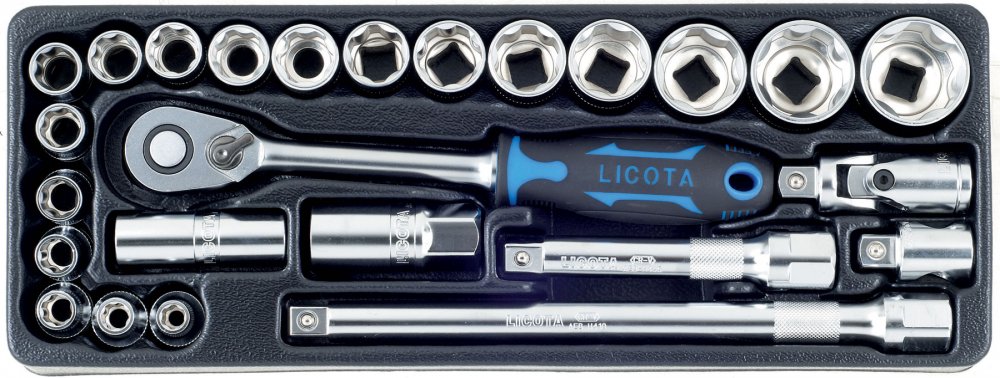 Výplň mimo samotné ráčny obsahuje nepoužívanější příslušenství, jako jsou ořechy 8 - 32 mm, prodlužovací nástavce a další.