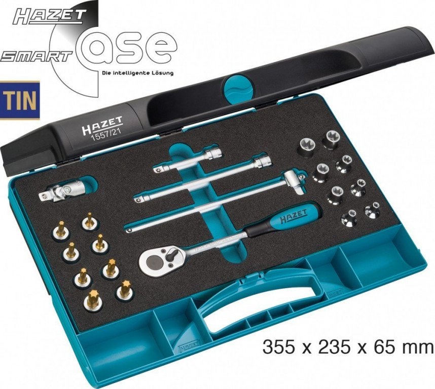 Sada hlavic a bitů TORX s ráčnou a příslušenstvím, kvalitní německý výrobce HAZET, celkem 21 kusů v praktickém plastovém kufříku.