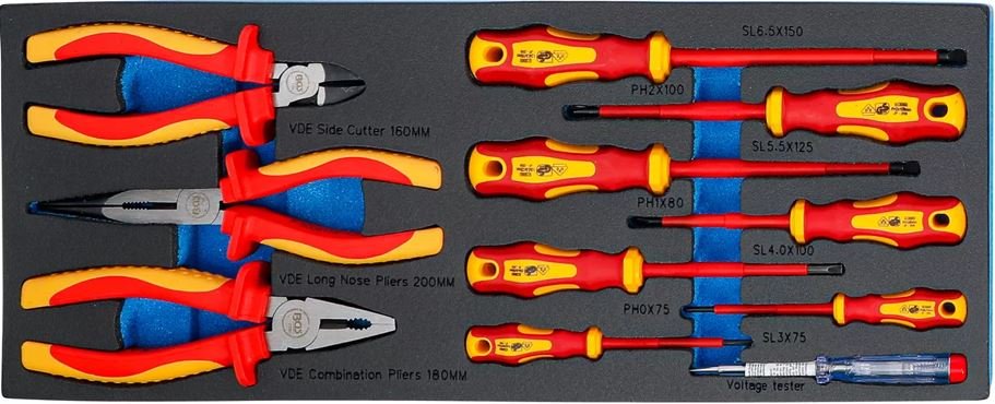 | 3 ks | Šroubováky VDE křížové: PH0 (75 mm), PH1 (80 mm), PH2 (100 mm) |