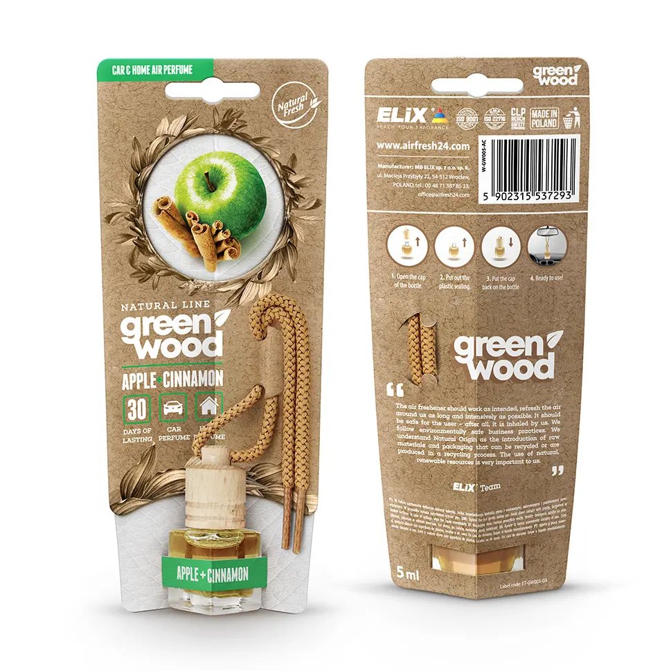 GREEN WOOD - Osvěžovač vzduchu s dřevěným víčkem Apple & Cinnamon