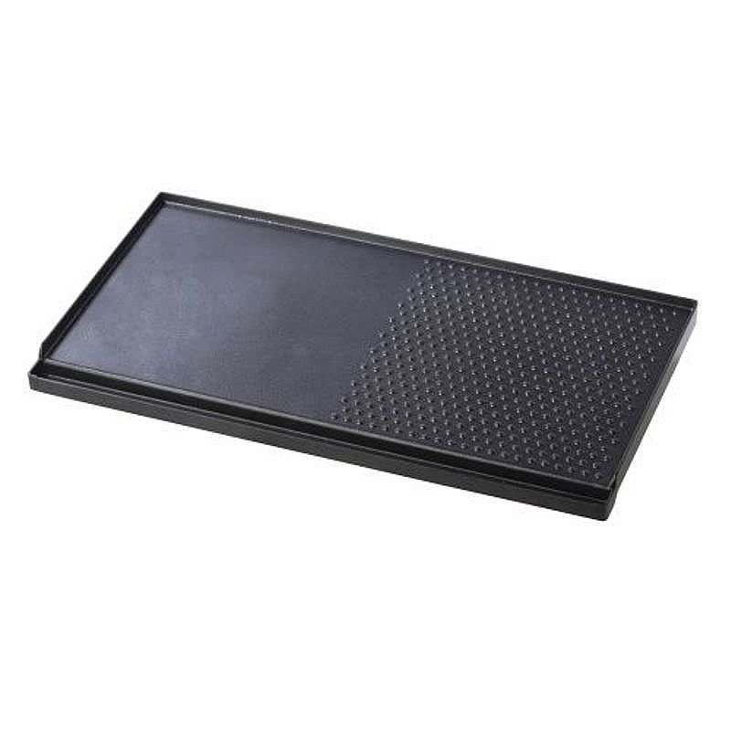 Grilovací deska s nepřilnavým povrchem a odtokovým žlábkem.