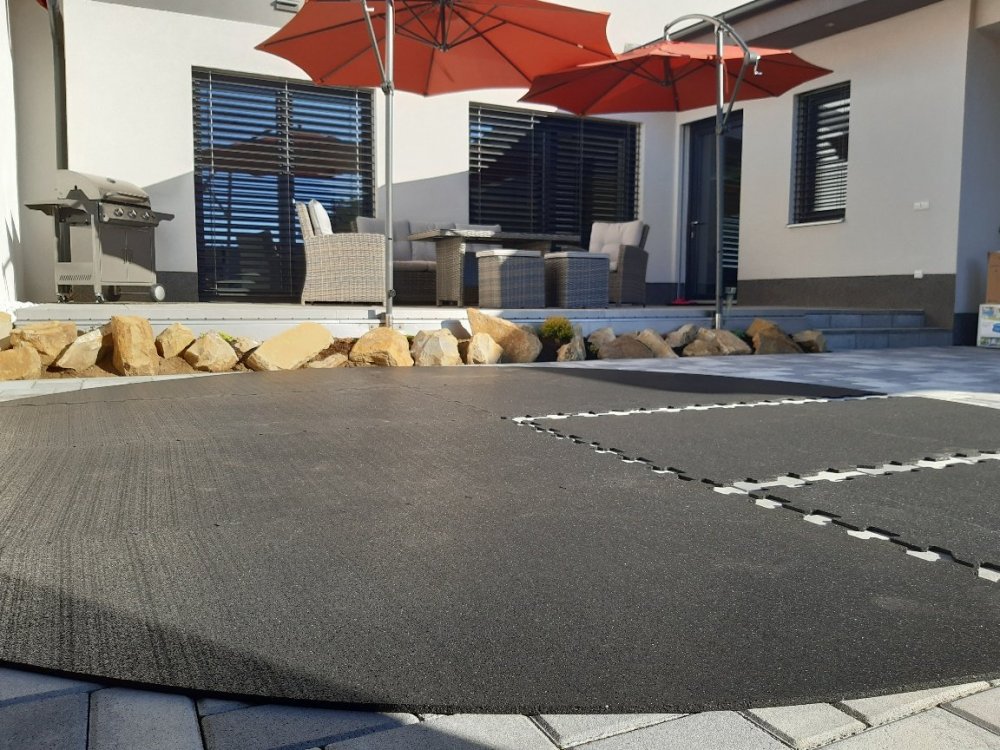 Na tuto plochu pak přeneste jednotlivé díly puzzle podložek a rozložte tak, aby všechny horní strany byly pohledové viz odstavec výše "Vysvětlení dvou možných rozdílných typů povrchů". Poté už jen jednotlivé díly podložky spojíte puzzle zámky a podložka je kompletní, připravená pro umístění bazénu či vířivky.