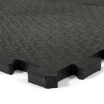 Vytvoření gumové podlahy je velmi jednoduché. Rohože jednoduše položíte a navzájem spojíte puzzle zámky. Na konci podlahy se rohož seřízne, čímž vznikne rovný okraj.