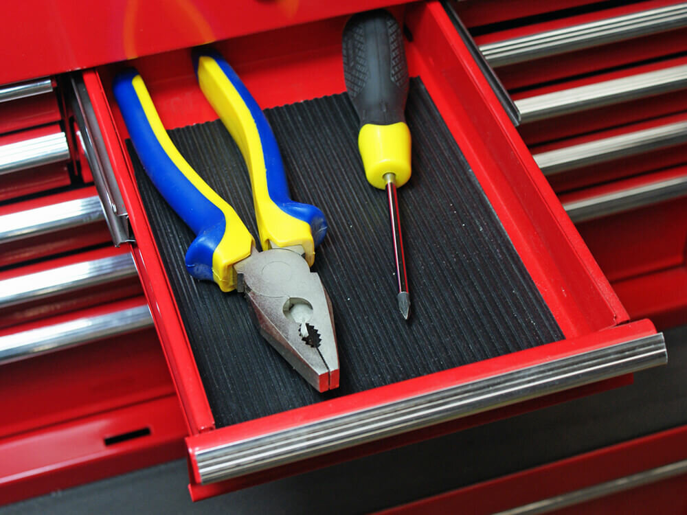Protiskluzová páska je vynikající pro použití jako podložky na nářadí (do zásuvek, skříněk, poliček, boxů atp.), protože její vyvýšená žebra umožňují, aby z nástrojů vypadly nečistoty a přebytečné části, čímž se zabrání riziku jejich možného následného zašpinění či poškození. Žebrovaná struktura také zajišťuje vynikající protiskluzovost a odvodnění.