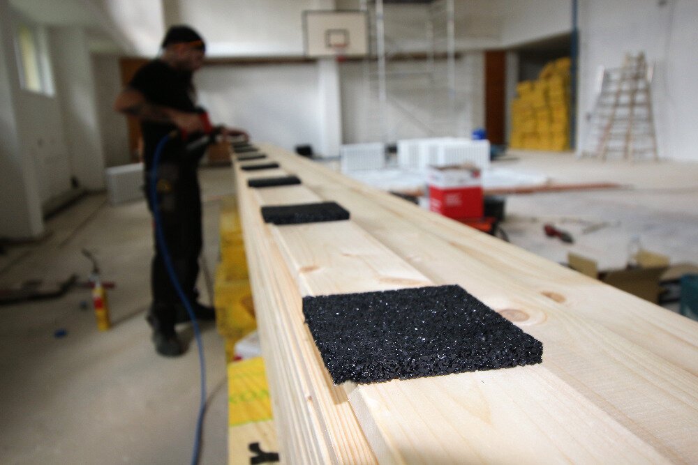 Univerzální podložky z pryžového granulátu lze použít i jako antivibrační podložky pro tlumení vibrací nejrůznějších menších strojů, například vypodložení noh kompresorů, lisů, praček, čerpadel apod. U větších strojů nebo tam, kde je žádoučí mít podloženou celou plochu stroje doporučujeme využit antivibrační rohože, které jsou pro tyto účely vhodnější.