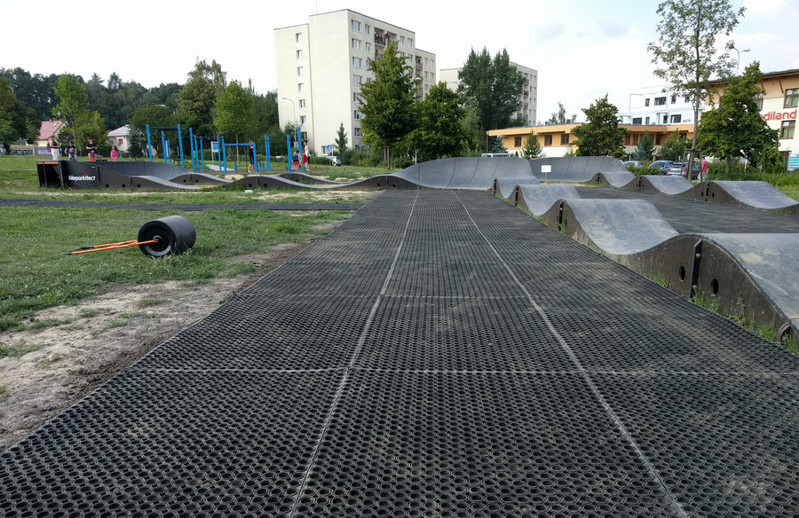 Povrch rohože OctoGrass je pevný a rovný tedy je vhodná i pro plochy, kde se jezdí s kolečky - kočárky, koloběžky, kola, motokáry, nákupní vozíky apod.