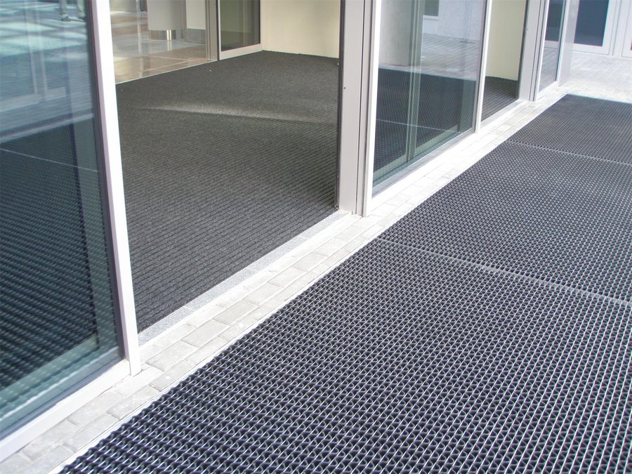Pro kompletní očištění obuvi doporučujeme navázat tento typ rohože textilní čistící zónou.