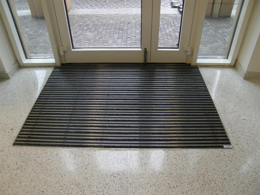 Základem rohože Alu Extra jsou hliníkové profily o šířce 27 mm, které jsou spojeny nerezovým lankem a odděleny pryžovými mezikroužky, tím je umožněno stáčení rohože a jednodušší manipulaci při úklidu. Do hliníkových profilů se fixují gumové nebo textilní pásky, které lze libovolně kombinovat a po opotřebení vyměnit. Mezi hliníkové profily je navíc možné vložit hliníkovou škrabku. Nejčastější po... Celý popis