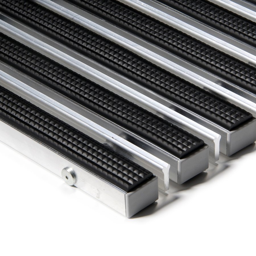 Základem rohože Alu Extra jsou hliníkové profily o šířce 27 mm, které jsou spojeny nerezovým lankem a odděleny pryžovými mezikroužky, tím je umožněno stáčení rohože a jednodušší manipulaci při úklidu.