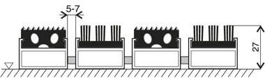 • Rohož je možné v úrovni podlahy uložit do připraveného otvoru osazeného hliníkovým / nerezovým rámem šířky 30, výšky 30 a tloušťky 3 mm.