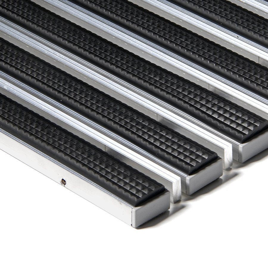 Základem rohože Alu Extra jsou hliníkové profily o šířce 27 mm, které jsou spojeny nerezovým lankem a odděleny pryžovými mezikroužky, tím je umožněno stáčení rohože a jednodušší manipulaci při úklidu.