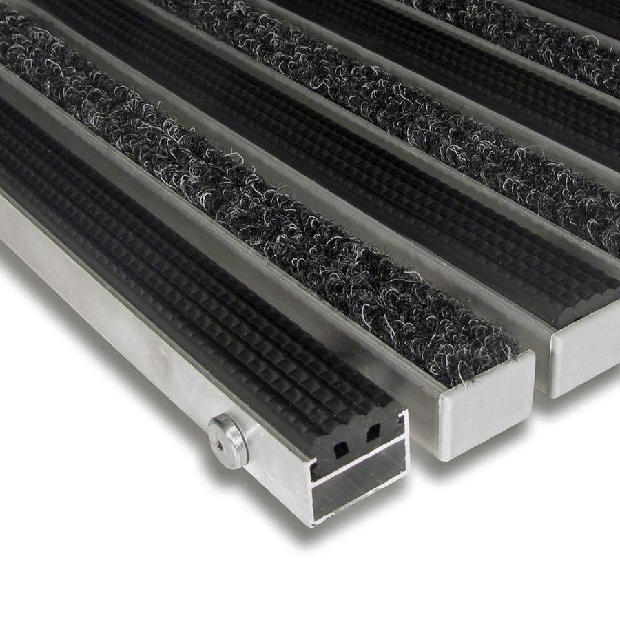 Základem rohože Alu Standard jsou hliníkové profily o šířce 27 mm, které jsou spojeny nerezovým lankem a odděleny pryžovými mezikroužky, tím je umožněno stáčení rohože a jednodušší manipulaci při úklidu.