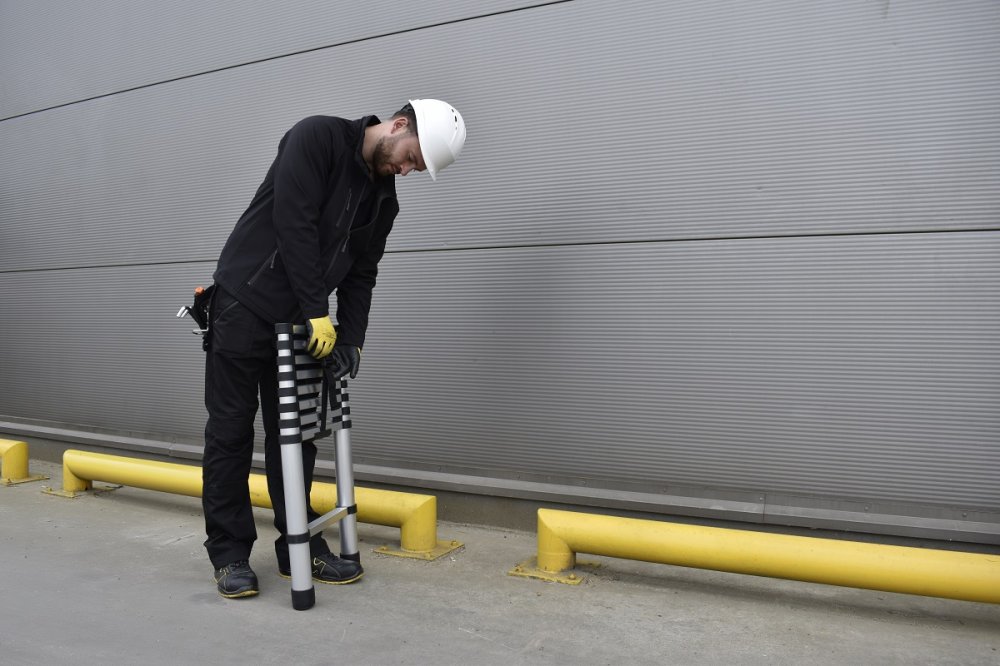 Pracovní výška žebříku se vztahuje k nejvyšší úrovni, kterou můžete dosáhnout, když na něm stojíte. U teleskopického žebříku určuje pracovní výška maximální výšku, které lze dosáhnout při úplném vysunutí a zajištění žebříku.
