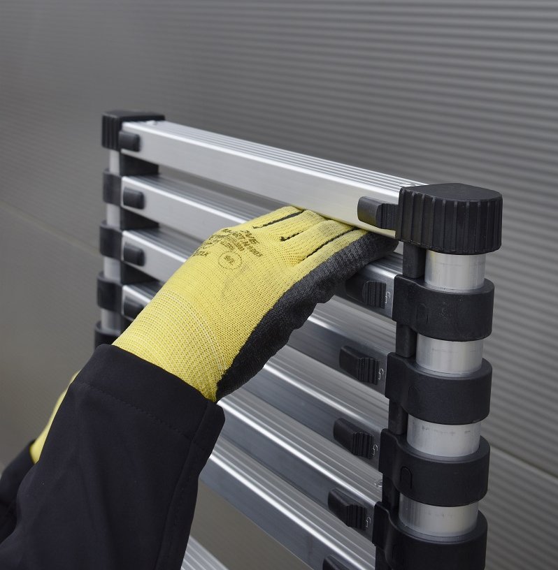 Díky indikátorům, které vás informují, že příčky jsou uzamčeny v cílové výšce, vždy víte, že je žebřík správně zajištěn.
