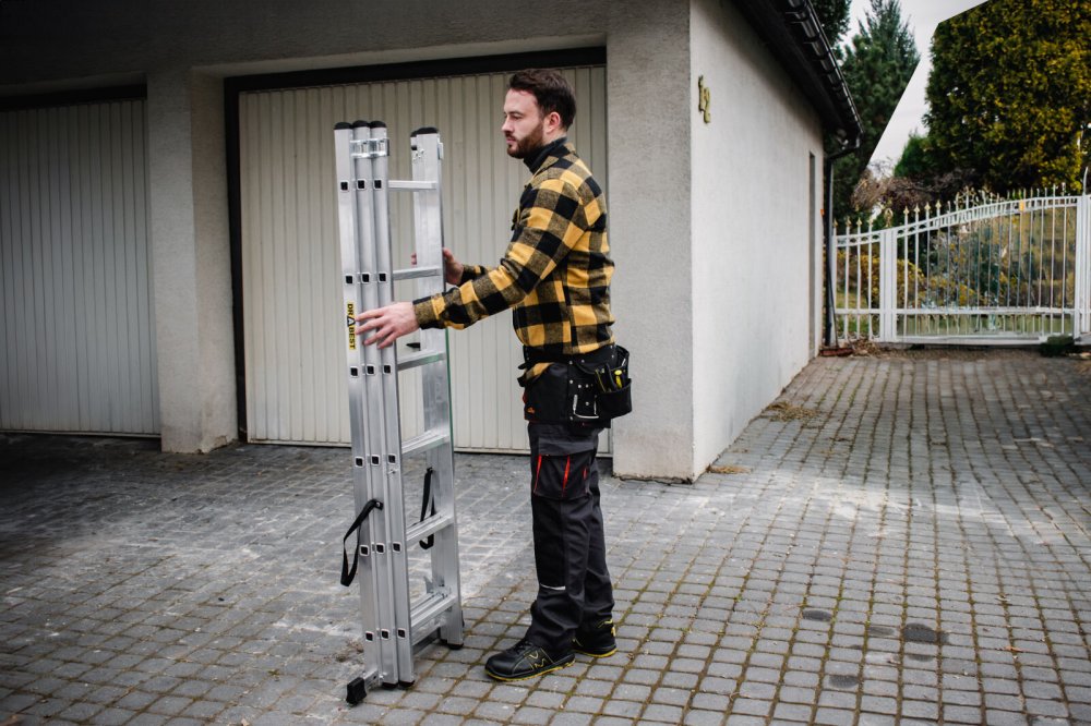 Je možné jej používat ve více polohách – jako klasický opěrný žebřík, volně stojící variantu nebo dokonce přizpůsobit pro práci na schodišti.