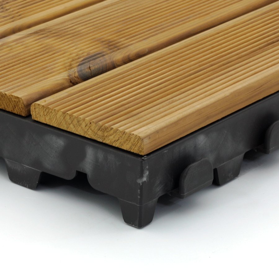 Terasová dlažba Linea Combi-wood představuje dokonalou harmonii mezi estetikou a funkčností. Dlaždice s povrchem ze Švédské borovice a robustní plastovou drenážní základnou zajišťuje stabilitu na každém povrchu. Dlaždici je možné použít jak v interiéru domu, na terase tak i u bazénu. Jakékoliv prostranství se tedy může proměnit na schůdné „se stylem“. Zámkový systém umožňuje rychlý a jednoduchý způsob pokládky i rozebrání. Kombinace dřeva, které je speciální metodou tepelně zpracováno, aby bylo odolné vodě i škůdcům, a samoodvodňovací plastové základny dlaždice pak vytváří dokonalý celek s dlouhodobou životností.