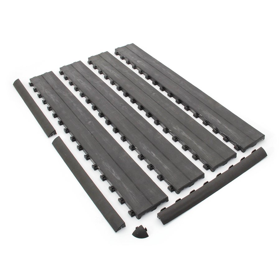 Nájezd pro dlaždice Woodenlike vyroben z polypropylenu s dezénem imitujícím dřevo je vhodný pro venkovní použití, například na zahradách, v altánech, v kempech atp. Nájezd pro dlaždice je samo-upínací a nepotřebuje tak žádný základ, upevňovací systém ani nářadí.