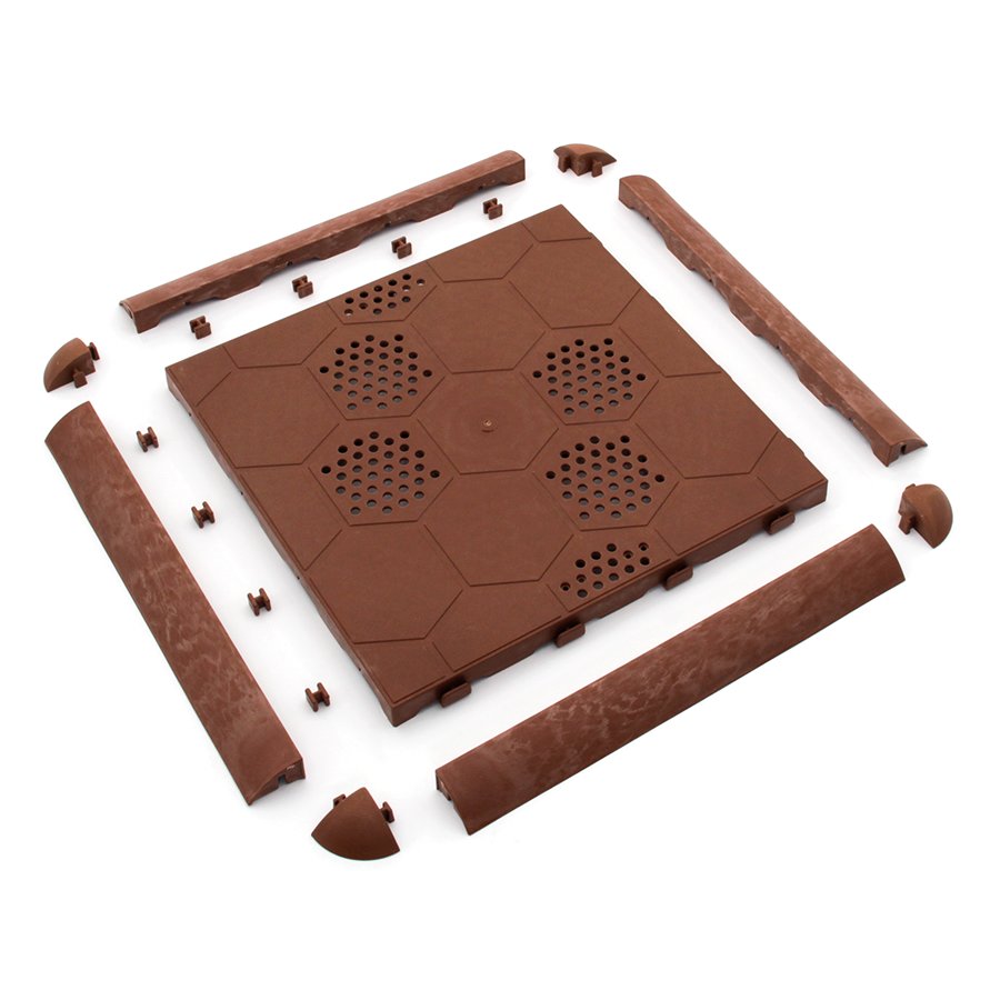 Hnědý plastový rohový nájezd pro terasovou dlažbu Linea Easy - 5,4 x 5,4 cm výška 2,5 cm - 4 ks