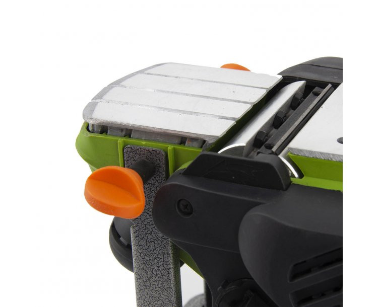 Součástí balení: stojan pro hoblík, vak na hobliny a klíč. Odnímatelná základna. Příkon (W) 850. Otáčky (min.-1) 16500. Maximální brusná šířka (mm) 82. Maximální brusná hloubka (mm) 3. Hloubka polodrážky (mm) 0-12. Hmotnost (kg) 4.