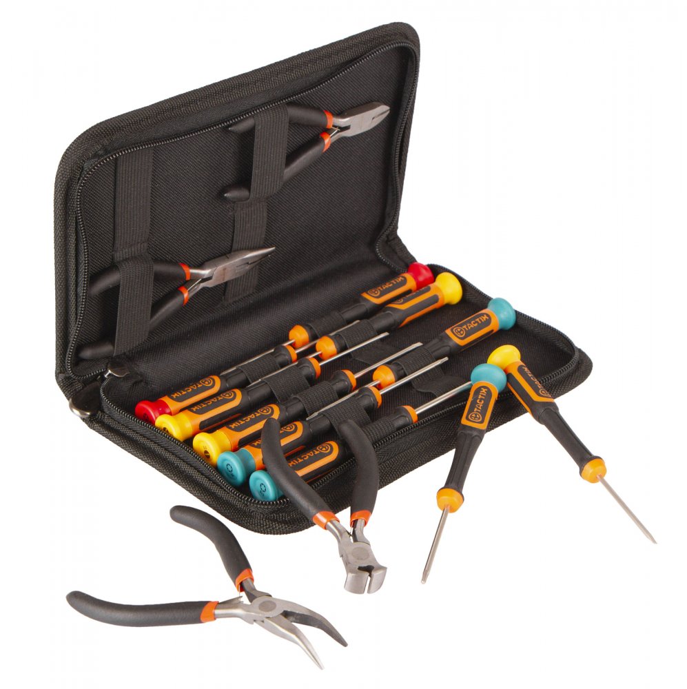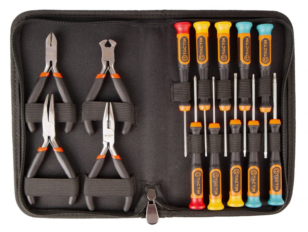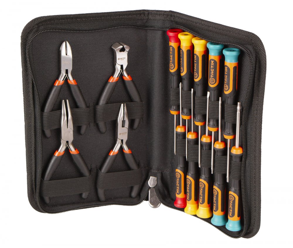 Sada hodinářských šroubováků a mini kleští od značky Tactix pro jemnou mechaniku.