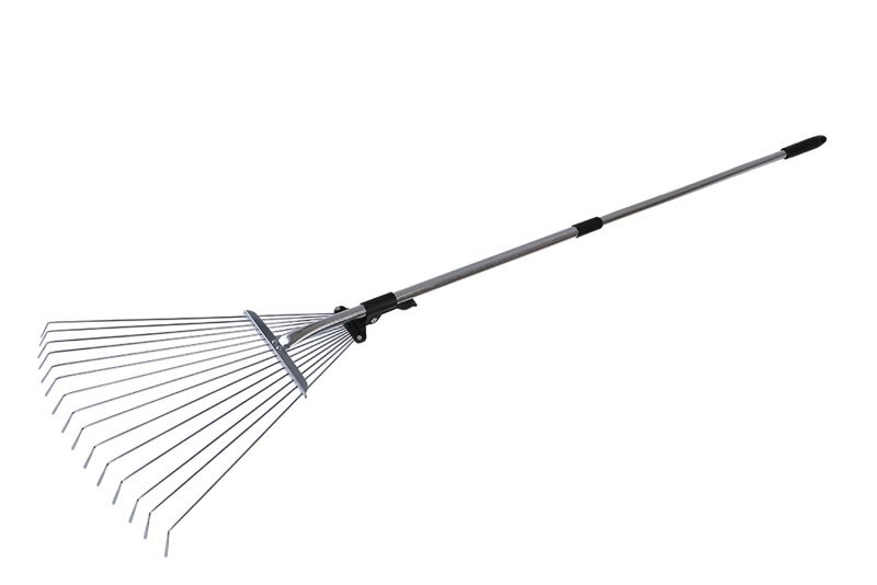 Švédské hrábě s kovovým klipem - pojistkou, nastavitelná rozteč lamel, teleskopická rukojeť, použití : k hrabání listí, trávy.