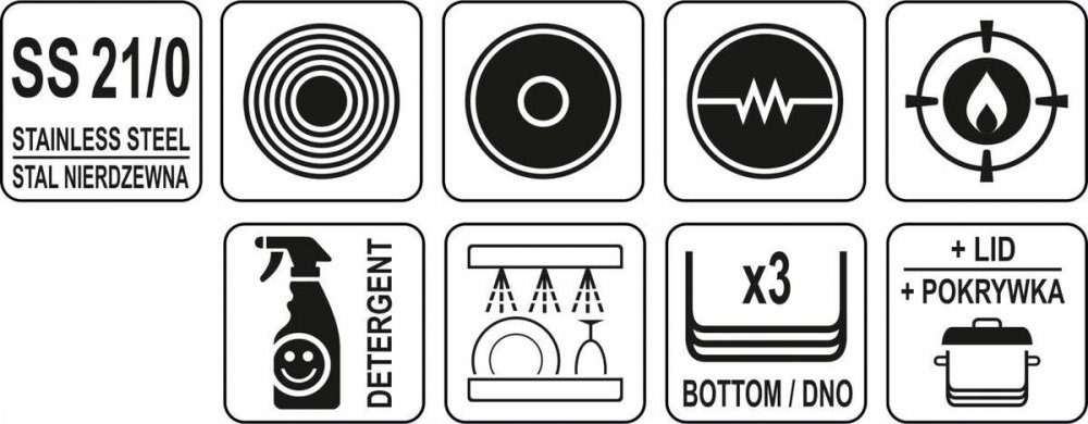 Boky hrnce a poklice jsou vyrobeny z hrubší oceli, která udržuje teplotu déle než u standartních hrnců z oceli 304. Hrnce YATO používají mimořádně pevné a neohřívací, pevně upevněné rukojeti. To zaručuje bezpečnost a mnoho let používání.
