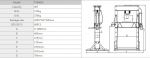 Konstrukci tvoří pevný ocelový rám s možností polohování pracovní desky v rozmezí 125–1080 mm. Lisovací píst se zdvihem 175 mm umožňuje plynulé a přesné dávkování síly.