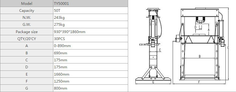 O návrat do výchozí polohy se stará dvojice silných pružin, které zajišťují rychlý a plynulý pohyb horní části. Lis je dále vybaven tlakoměrem a navijákem pro snadný posun pracovního stolu.