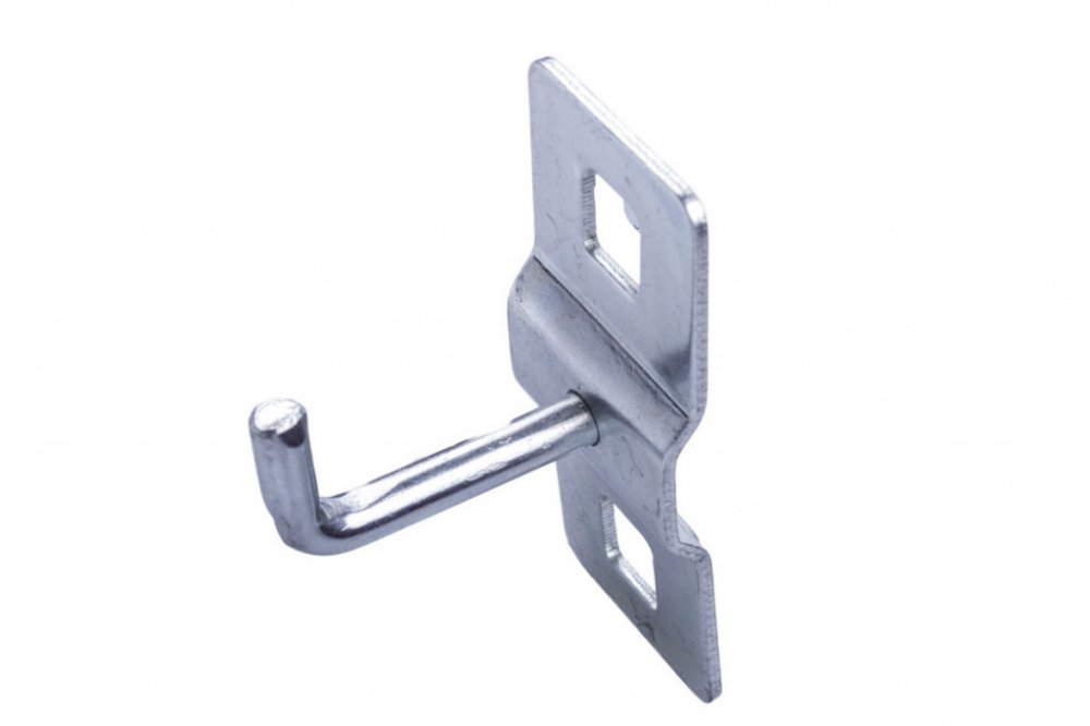 Jednoduchý hák dlouhý 35 mm je určen pro děrované desky s roztečí 38 x 38 mm. Připevněním na perforovaný panel lze rozšířit úložný prostor také pro sestavy dílenského nábytku, dílenské vozíky s nářadím i bez nářadí, pracovní stoly i policové regály.